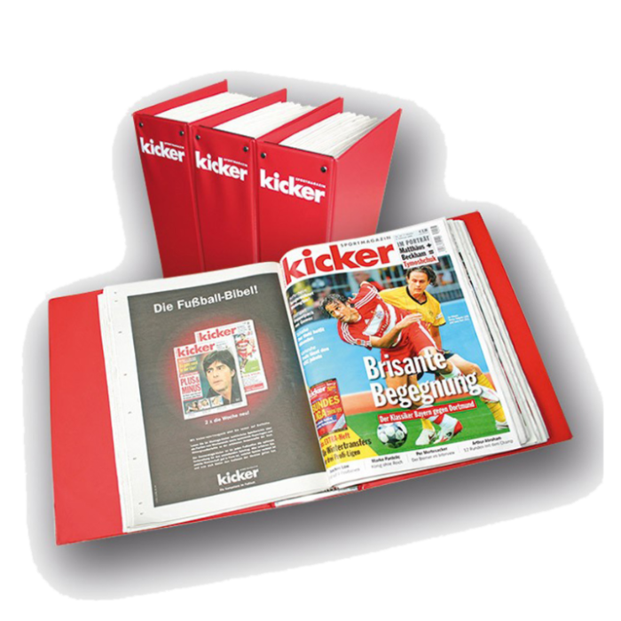 Mit der kicker Sammelmappe bewahrst du nicht nur deine Hefte auf, sondern zeigst auch deine Leidenschaft für Fußball und kicker. Ein Muss für jeden echten Fan!
